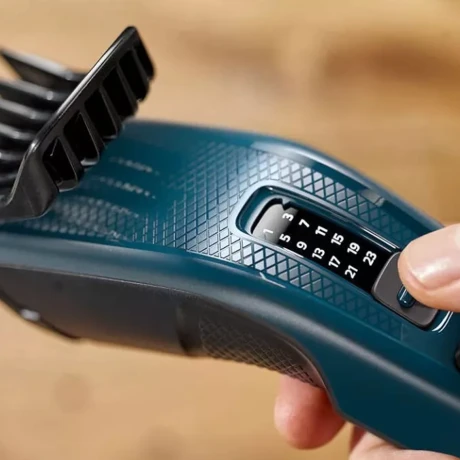 – Solo tienes que seleccionar y bloquear la longitud que deseas. El peine-guía ajustable tiene 12 posiciones de longitud entre 1 mm y 23 mm, con una precisión de 2 mm entre cada longitud. Retira el peine-guía para un corte apurado de 0,5 mm.