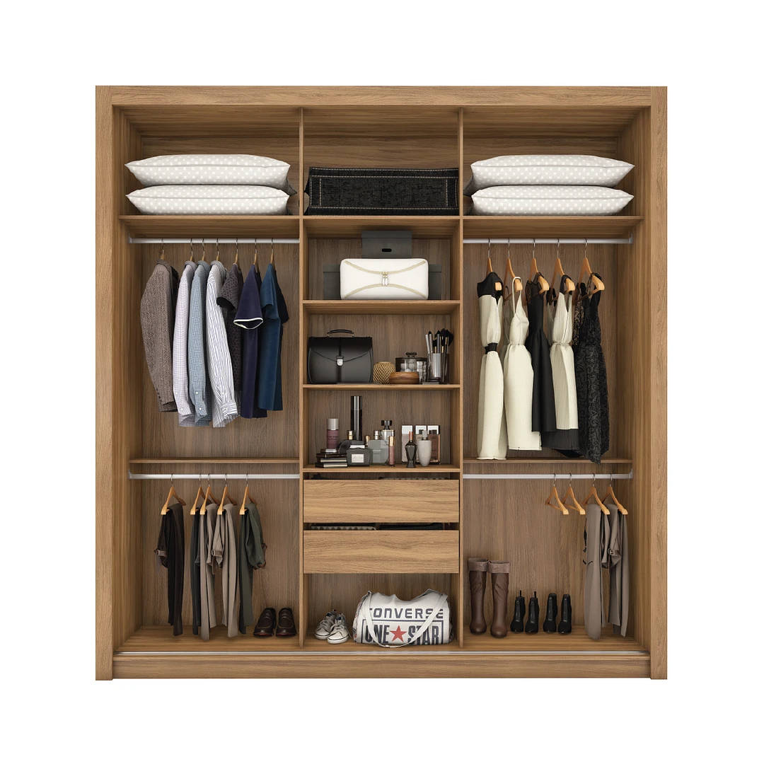 Ropero 3 Puertas Corredizas 2 Cajones Espejo Central Moderno