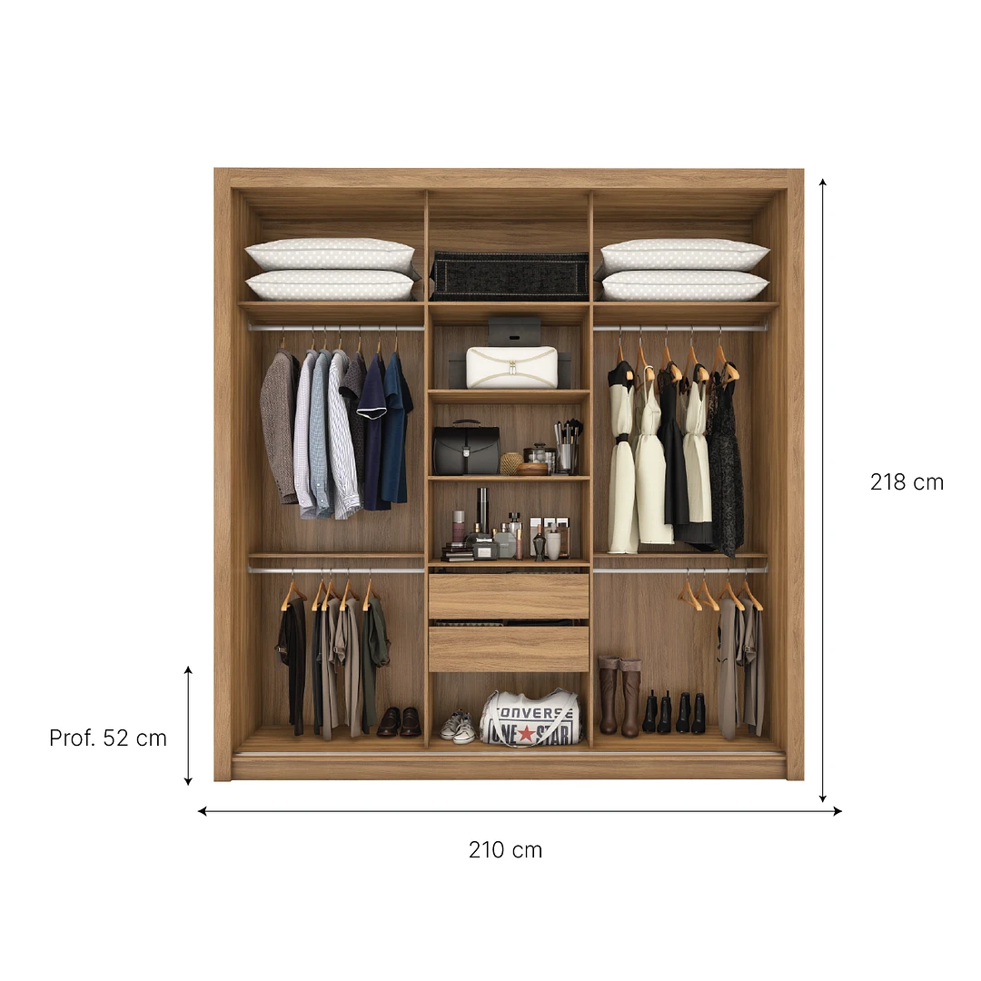 Este ropero combina diseño moderno, gran capacidad de guardado y detalles funcionales que lo hacen ideal para