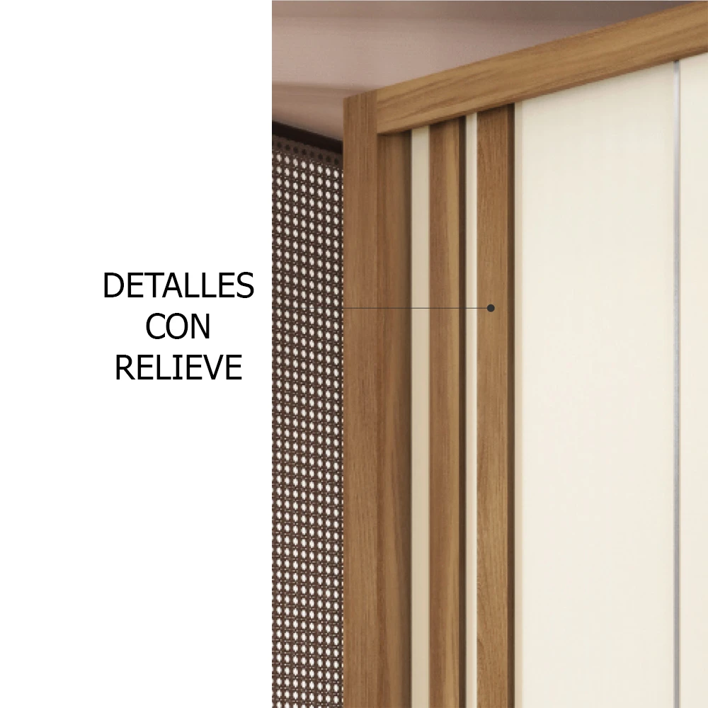 El ropero Ravel combina diseño funcional con detalles decorativos en relieve que le aportan un toque distintivo.