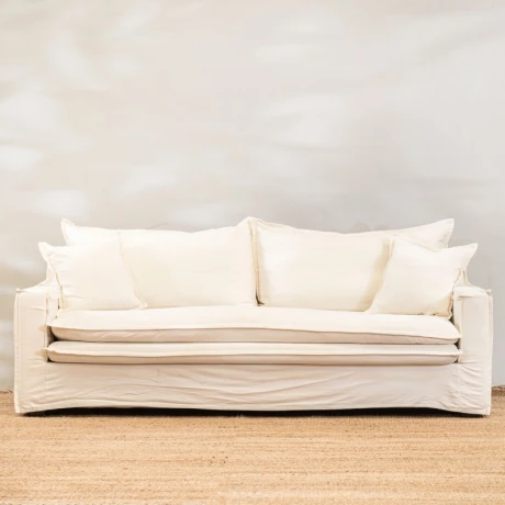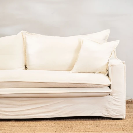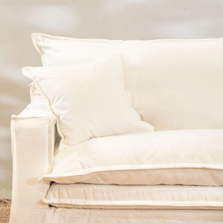Sillón con fundas 100% desmontables en lino crudo. El doble pillow hace que el sillón sea súper cómodo, con estilo moderno y versátil.